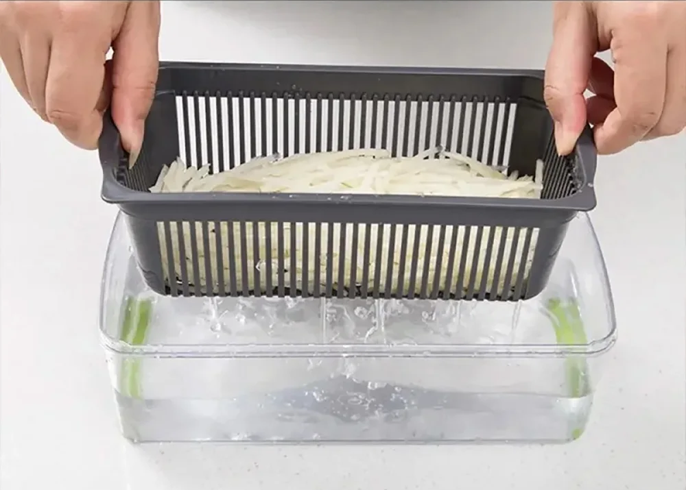 Rinse, drain, and prep—all in one place. The integrated basket lets you wash fruits and vegetables directly inside the container, saving time and reducing extra dishes.