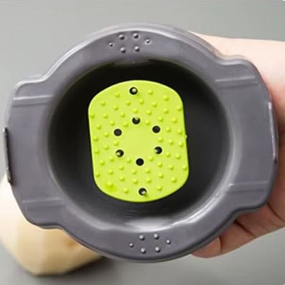 Built-in container collects ingredients neatly, keeping your kitchen organized.